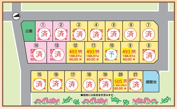 | 区画№ | 面積 | 坪単価 | 土地価格 | 負担金 | 総 額 | |||